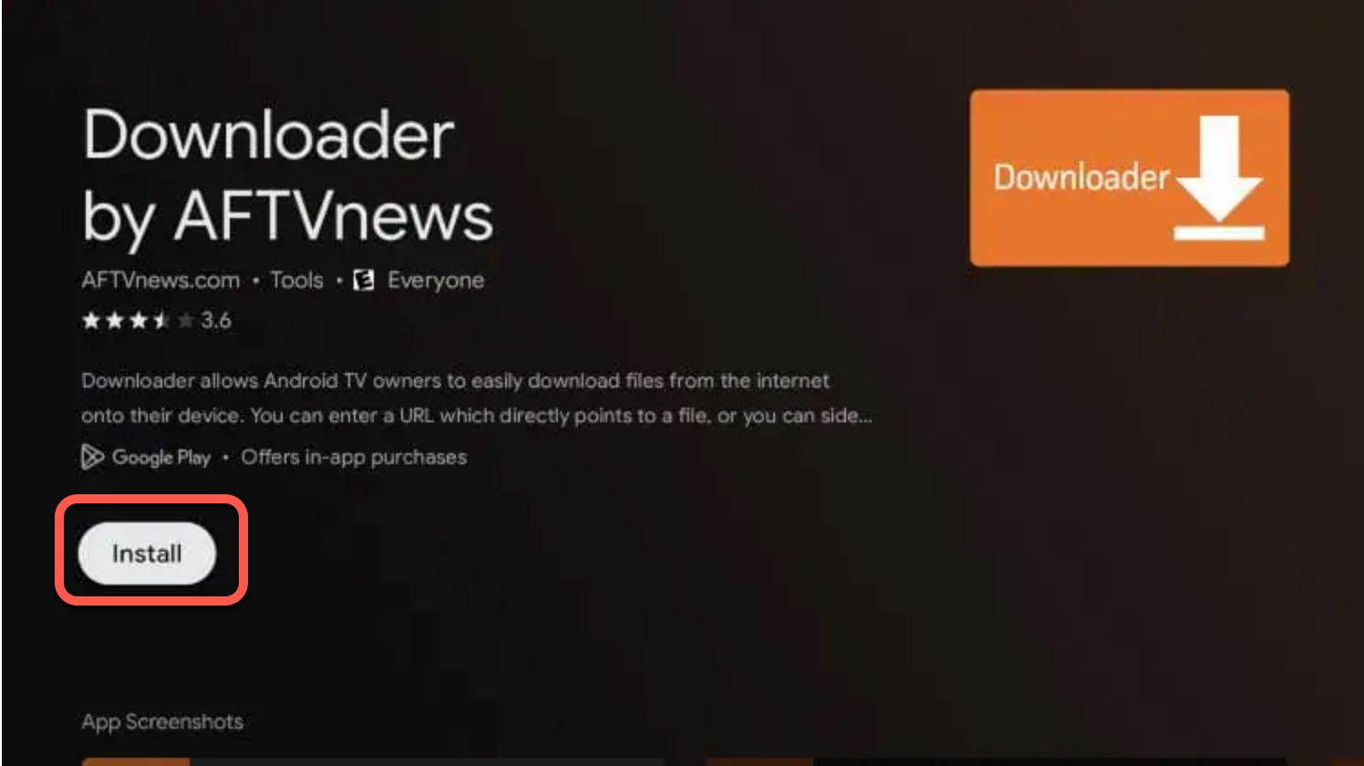 2) From the Apps section search and download / install the Downloader app from the app store.